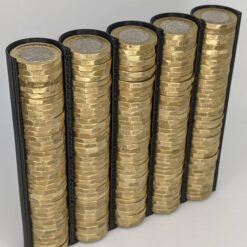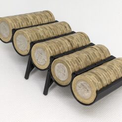 - Holds 5 stacks of 40x £1 coins, totaling £200.