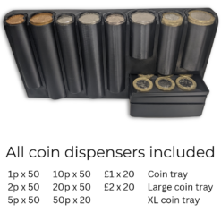 - 5p Dispenser: Holds 50 coins (£2.50).
