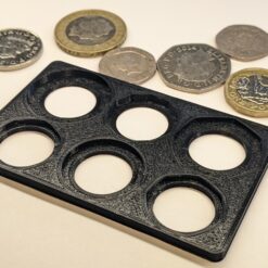 - Coins held in place with friction. Easy to remove coins by pushing from rear of coin holder.