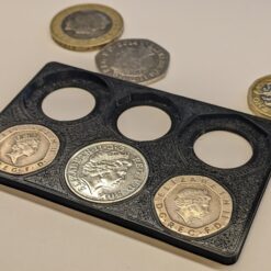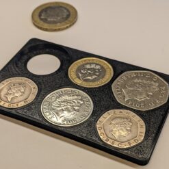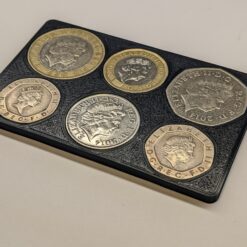 - Store £4 in coins (10p, 20p, 20p, 50p, £1, £2). Credit card size. Fits in your wallet.