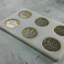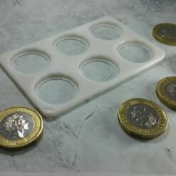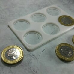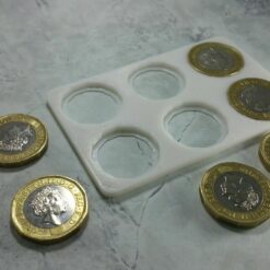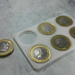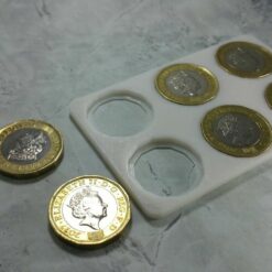 Hand made UK £1 coin holder. Fits 6 new style pound coins.Credit card size. Fits in your wallet.Unique product designed and made only by us. Excellent gift for that someone who has everything!Great for kids birthday present or stocking filler. Thin enough to fit inside birthday cards.Travel light. Take this and a few cards. Carry enough cash for small purchases and use your cards for everything else. No need for bulky wallet or coins jangling in your pocket. Coins held in place with friction. Easy to remove coins by pushing from rear of coin holder.Measures 85.6mm x 54mm x 3.5mm (same length and width as a credit card and as thick as about 4 credit cards).