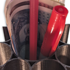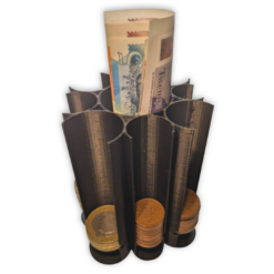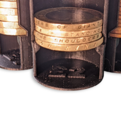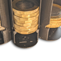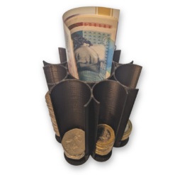 Organize your coins and notes effortlessly with our UK Coin Holder & Desk Organizer. It holds all standard UK coins, with space for over £100. The center tube can store notes or double as a desk tidy for pens and pencils. Our unique, 3D printed design is exclusive, offering a practical and stylish solution you won’t find elsewhere. Perfect as a gift for the organized individual or the person who has everything.