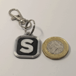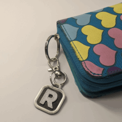 - Choose any letter or number (A–Z, 0–9) – silver monogram on black square tag