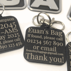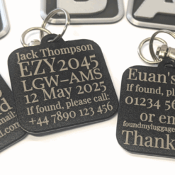 - Free engraving on the back – name, phone number, flight details or message