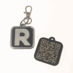 Each tag is made to order with a black background and a raised silk silver border and letter or number. The larger size offers more space than our keychain version, ideal if you’d like to include multiple lines or longer text.