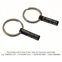 Personalised Black Key Tag – Custom Engraved Name, Pet ID, Contact Info, Gift