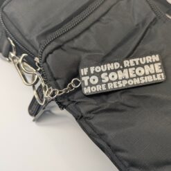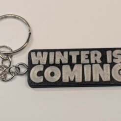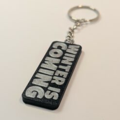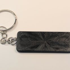 • Finish: black keyring body with silver filament front text.