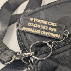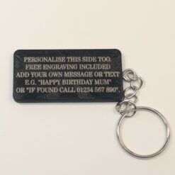 Choose any name, word, or short phrase for the front, arranged cleanly so longer names still look balanced and easy to read. Ideal for keys, school bags, luggage tags, and thoughtful gifts.