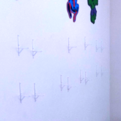 You will receive 2x wall brackets and 6x picture hook nails suitable for mounting 1x toy gun / Nerf blaster.