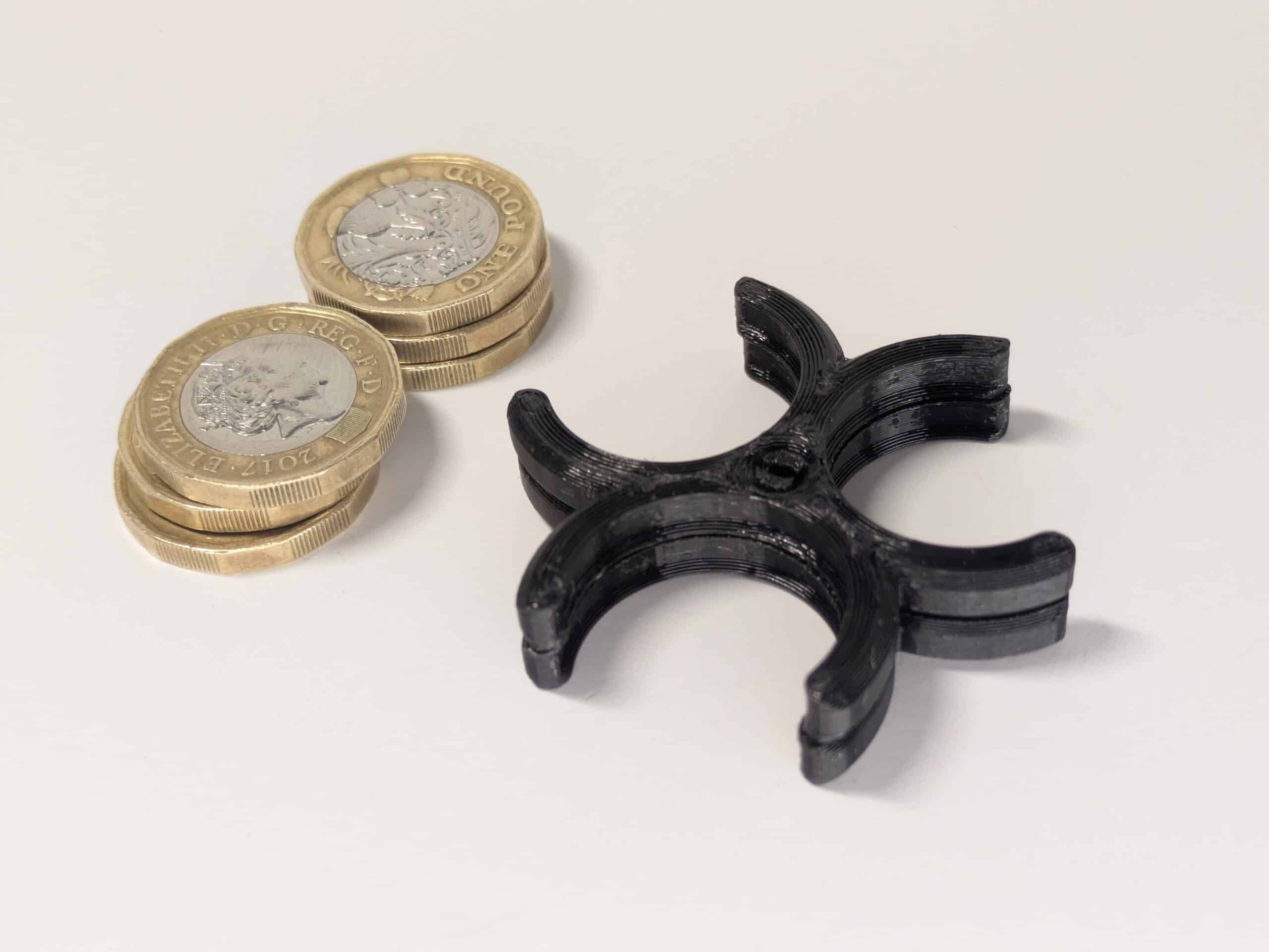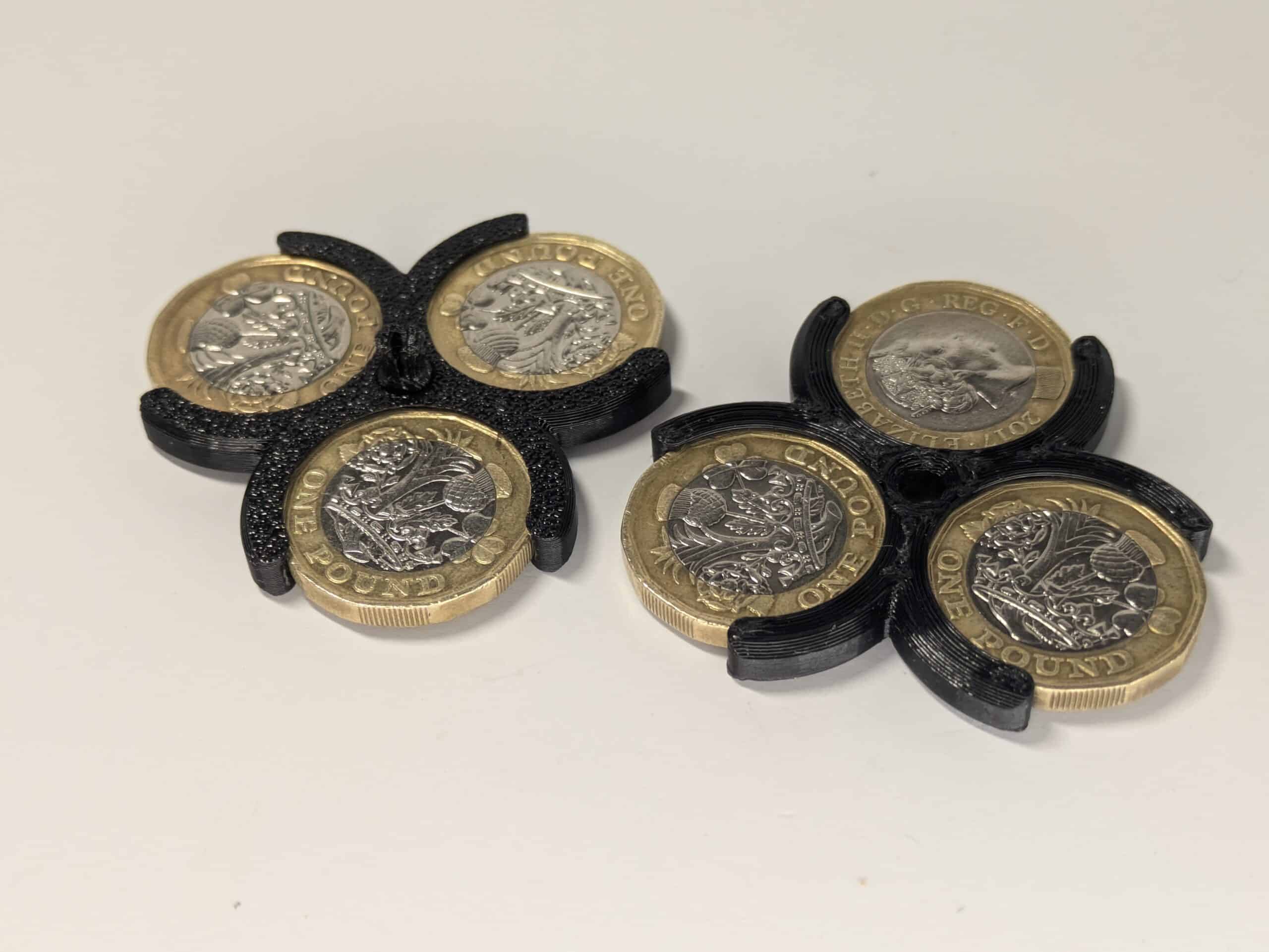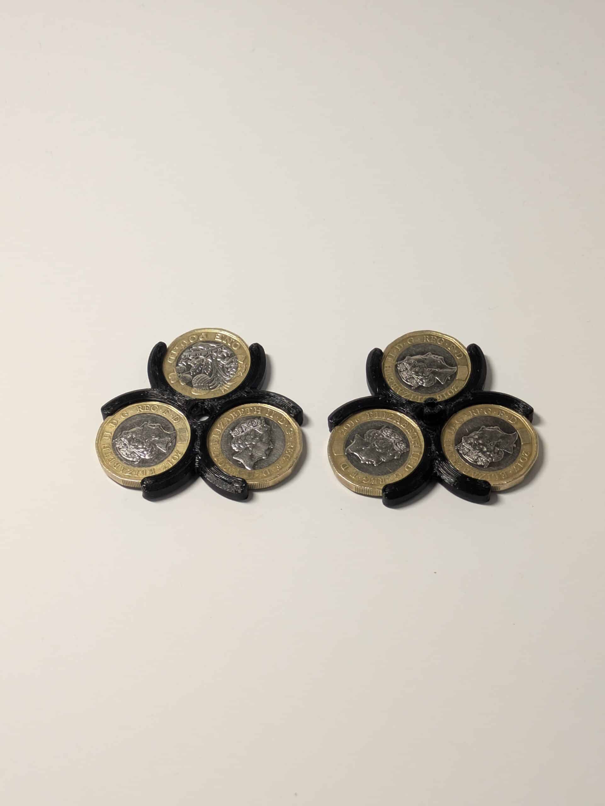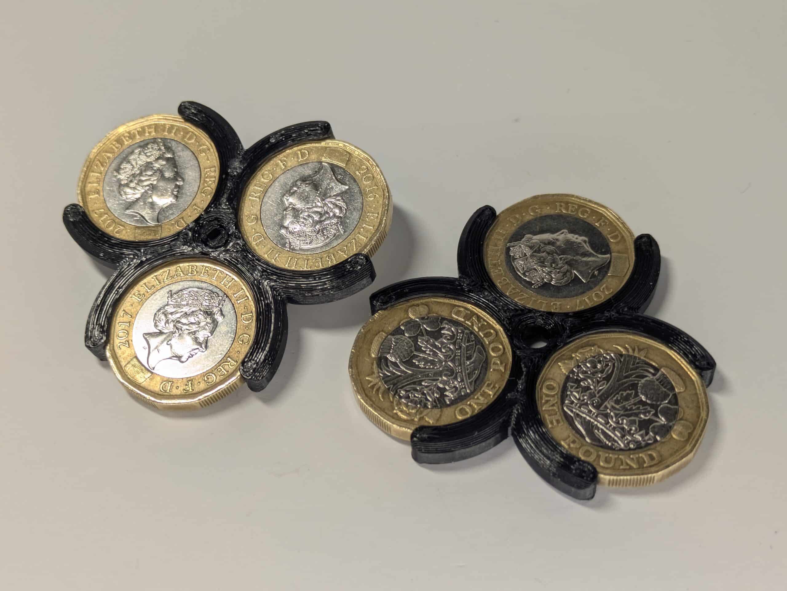 Each £3 Flex Click Coin Holder measures approximately 45mm across and 5mm deep, perfectly shaped to hold three £1 coins in a precision circular arrangement. When connected via the supplied modular click connector, both holders swivel around a central pivot, maintaining easy access to your coins while doubling capacity to £6.