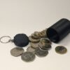 Wallet-size personalised container with sliding lid. Stores coins, cash, keys & more. Free custom engraving. Ideal everyday carry gift for men.