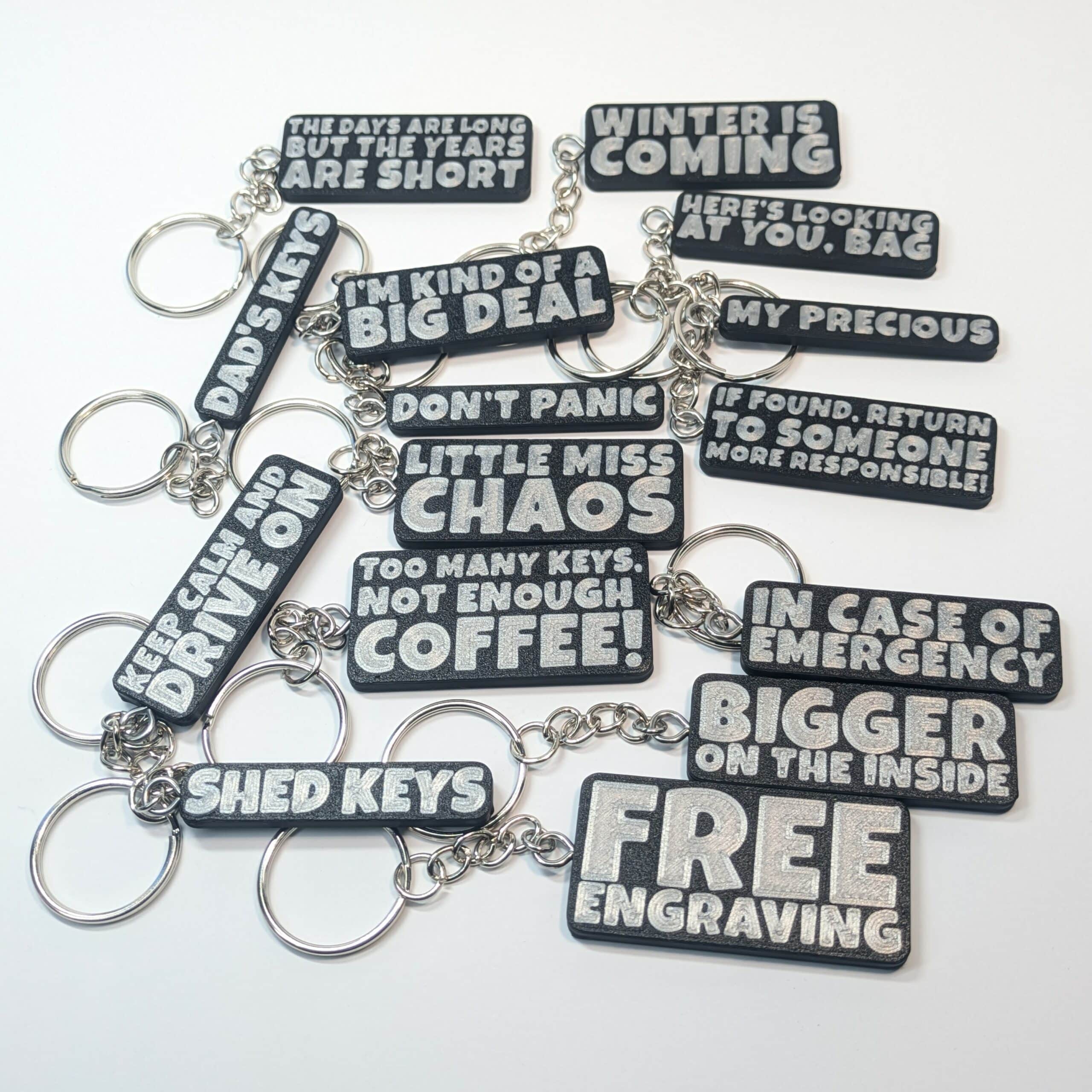 Choose any name, word, or short phrase for the front, arranged cleanly so longer names still look balanced and easy to read. Ideal for keys, school bags, luggage tags, and thoughtful gifts.