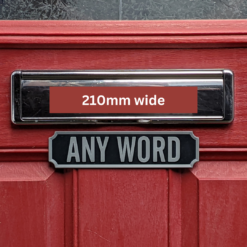 - 210mm wide x 52mm tall with 35mm text (best read from approx. 2.1m to 7.5m)